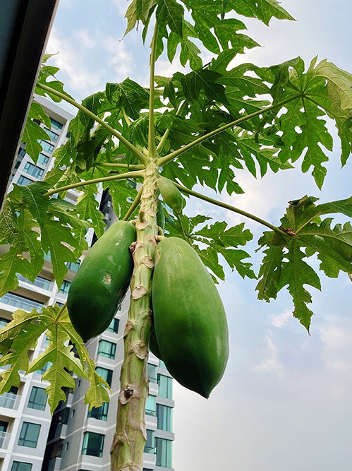 Ngoài rau, Diệp Bảo Ngọc cũng trồng thêm nhiều loại cây ăn trái như hồng xiêm, ổi, bưởi, đu đủ... Nữ diễn viên tiết lộ trái cây cô thường chọn loại giống tốt, được trồng trong các chậu lớn.